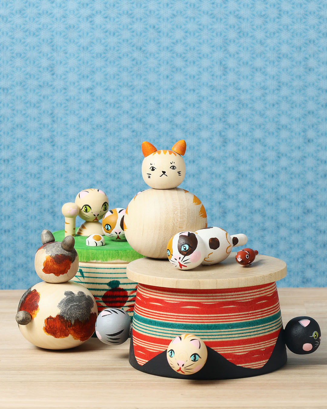 Cat kokeshi doll-2 猫こけし | KOYAMA, Yoshimi 小山芳美工人 | Togatta style 遠刈田系 | 7.5cm in height