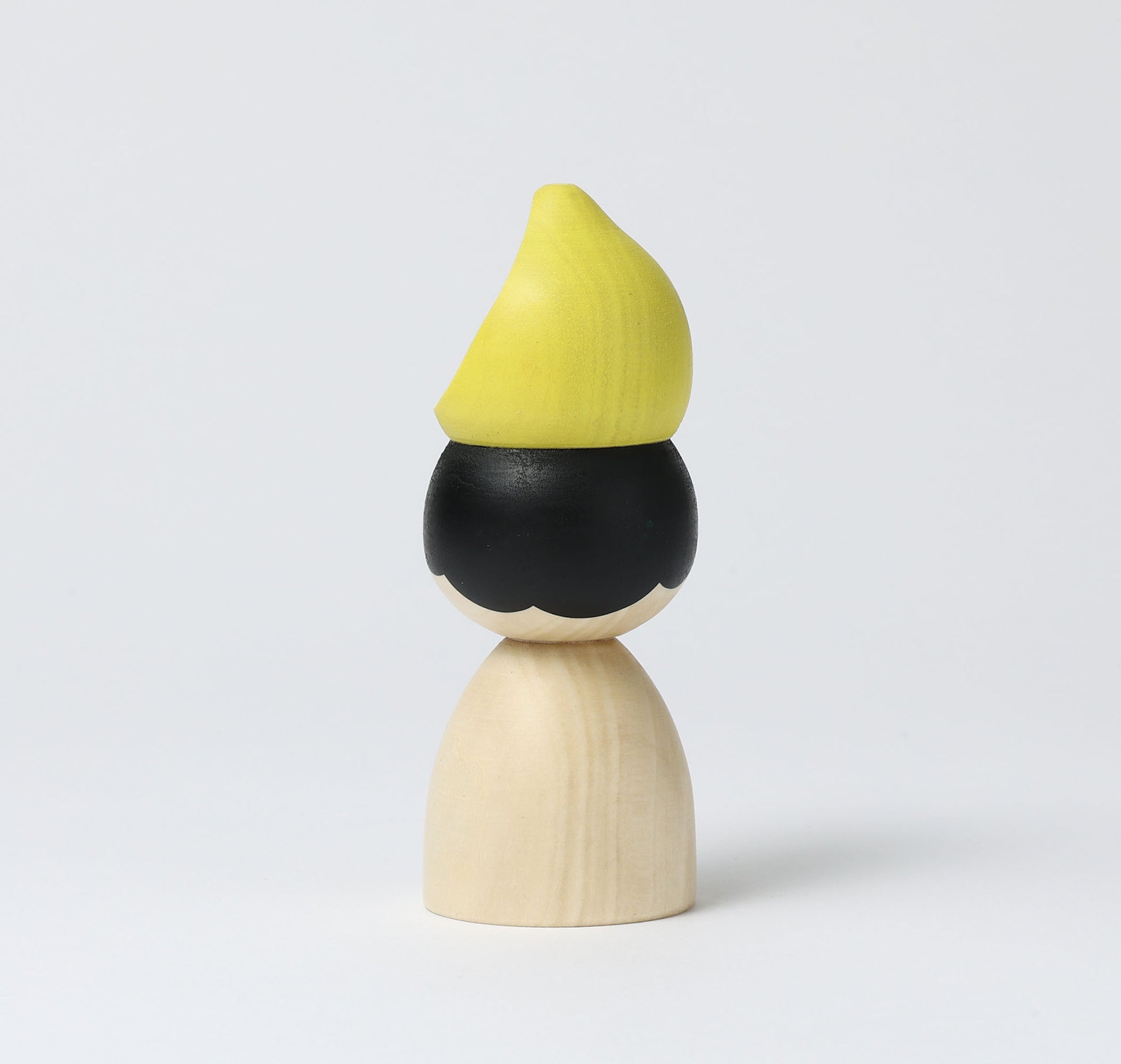 This cute kokeshi with lemon was made by HIRAGA Teruyuki who is a Sakunami style kokeshi craftsman.