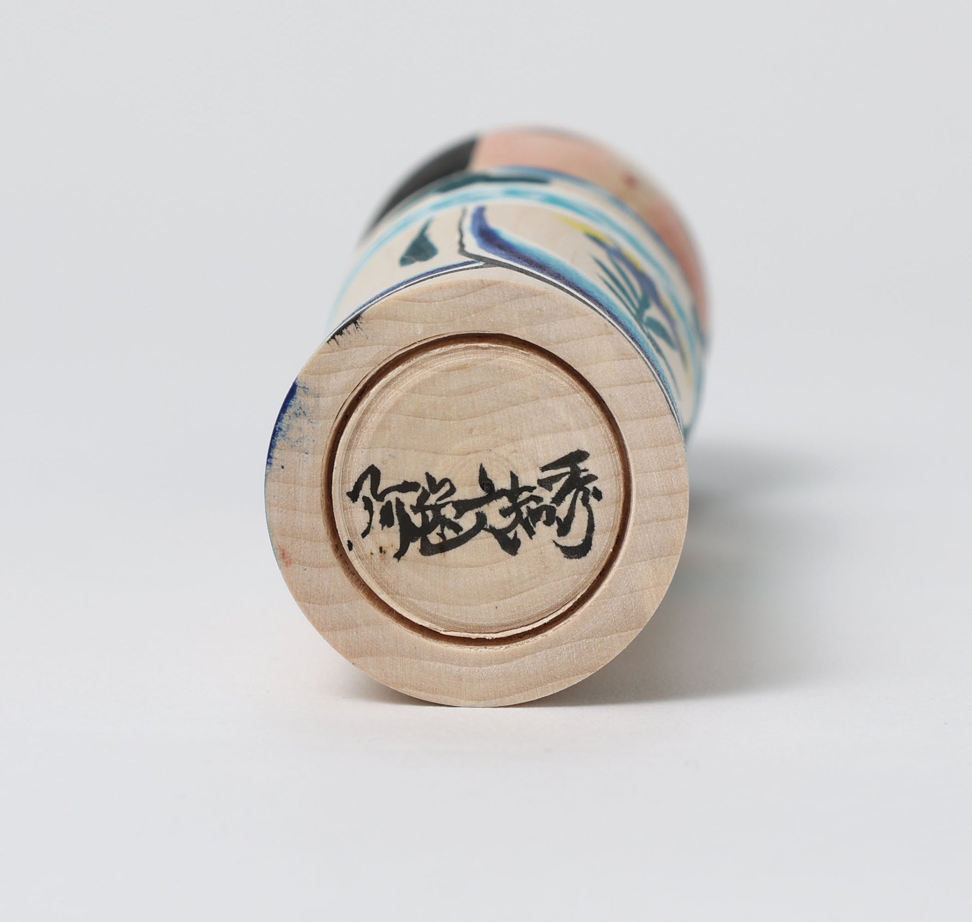 This is an Imayo Tsugaru style kokeshi doll, named ‘Kinagashi’, by Muchihide Abo.