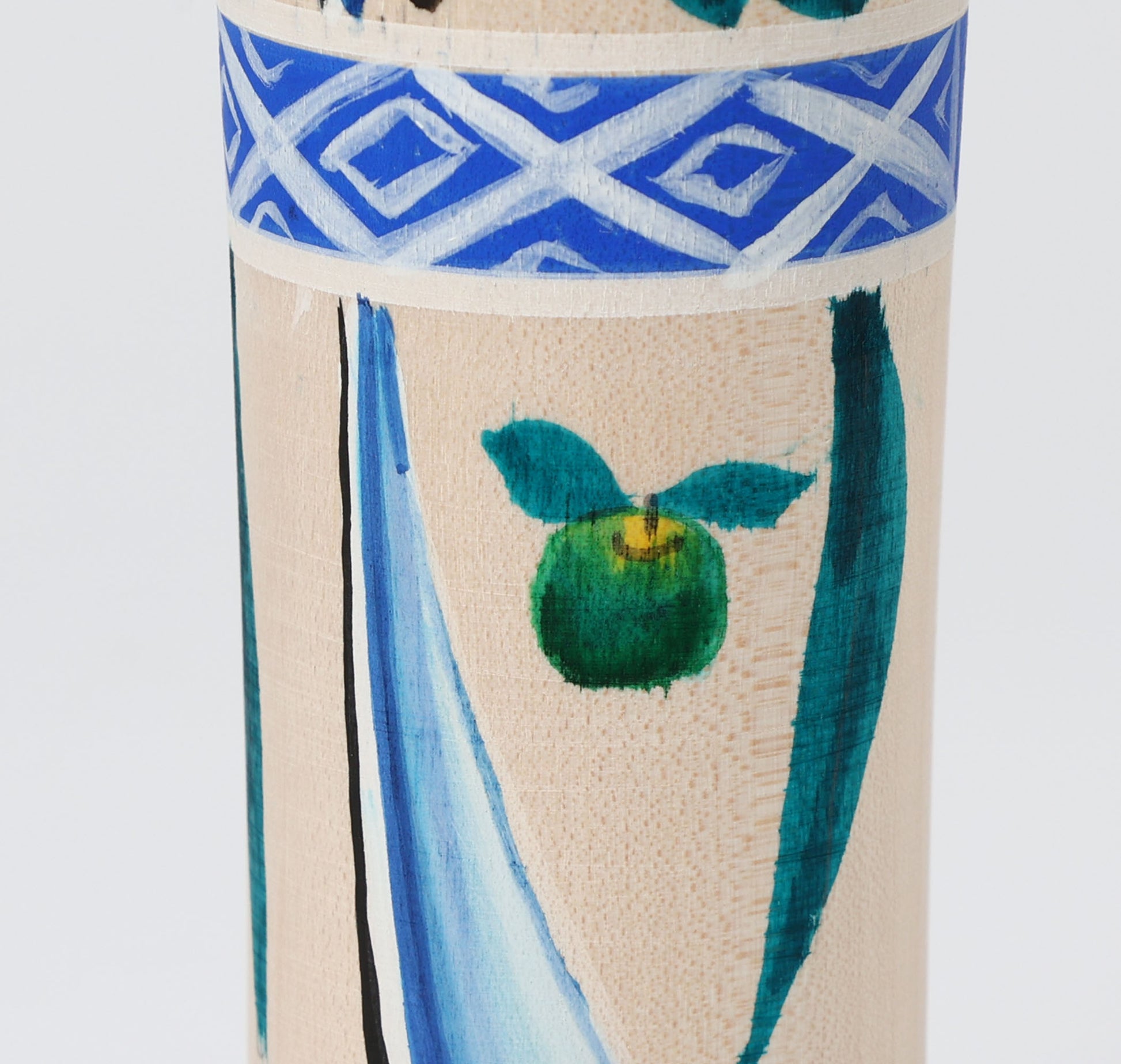 This is an Imayo Tsugaru style kokeshi doll, named ‘Kinagashi’, by Muchihide Abo.