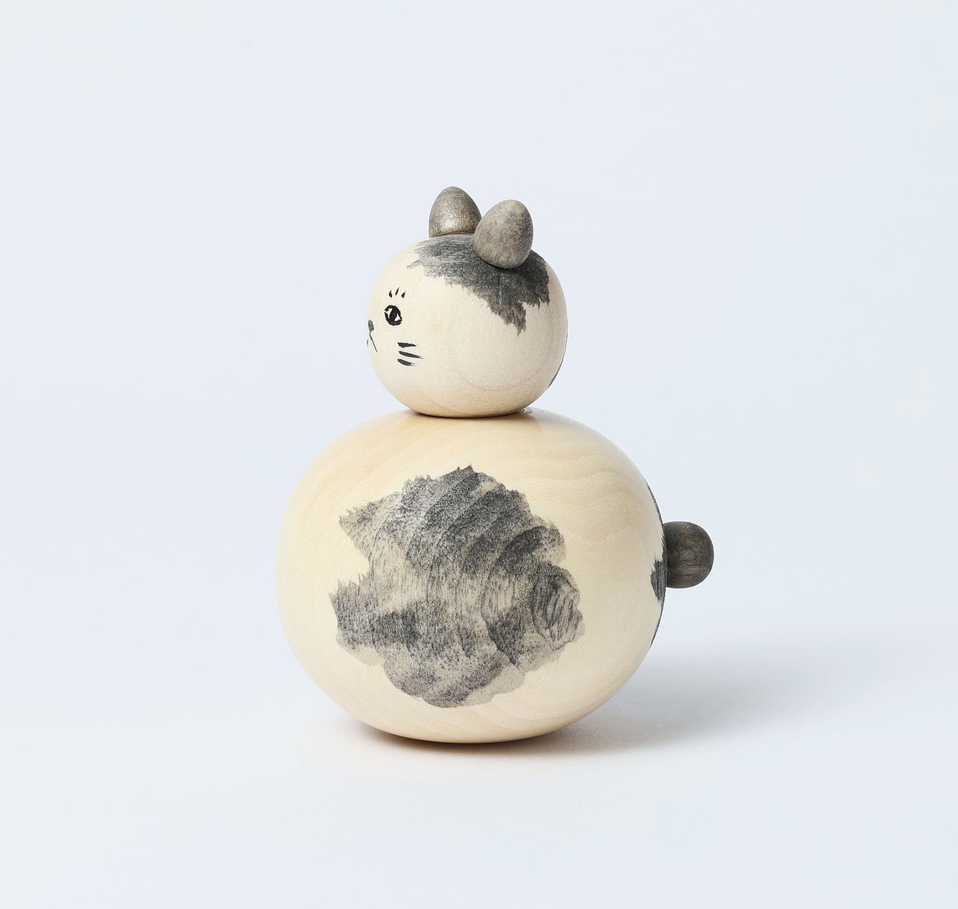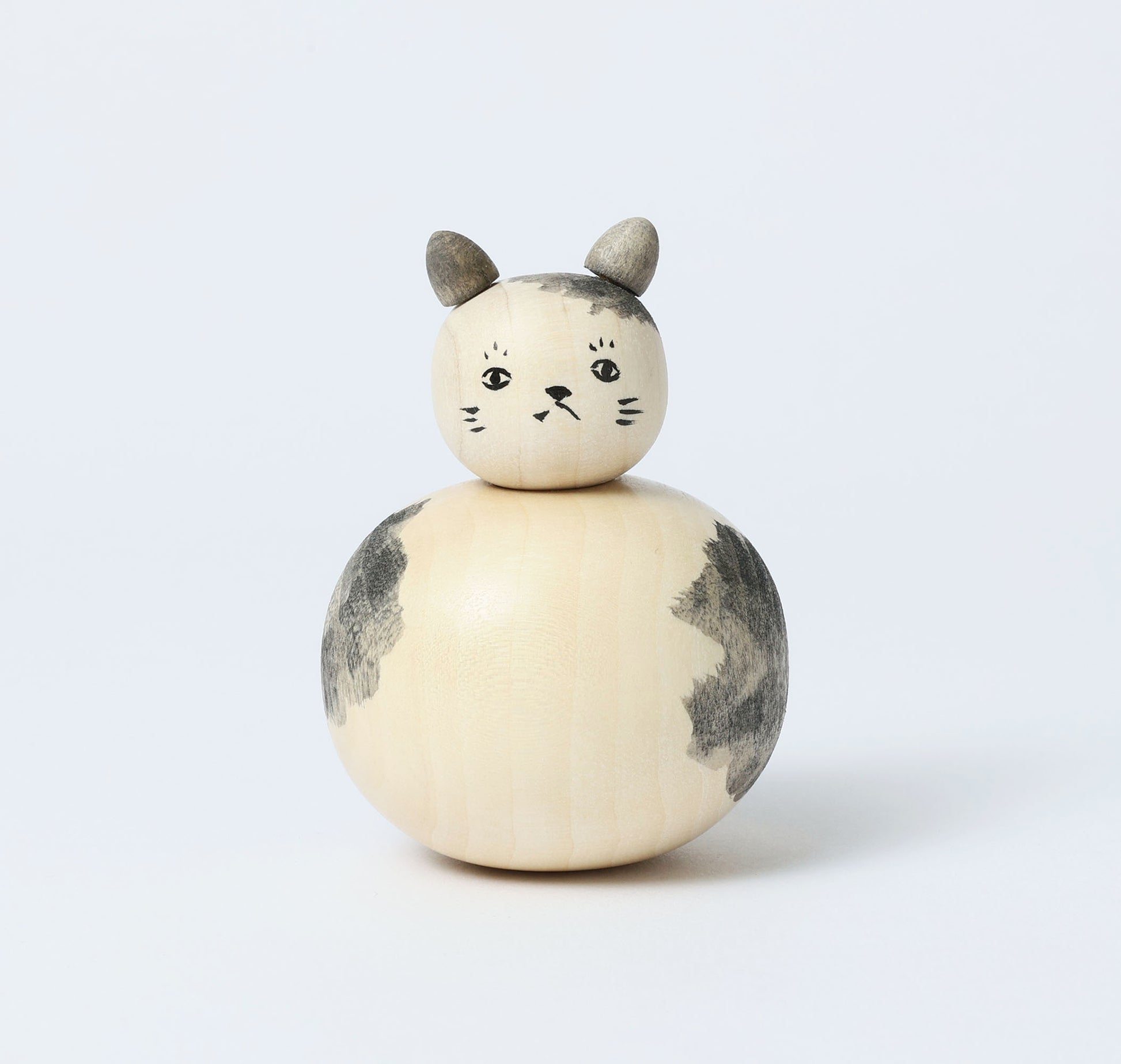 This is a Neko kokeshi doll, by KOYAMA Yoshimi who is a Togatta style kokeshi craftsperson. Neko means cat in Japanese.