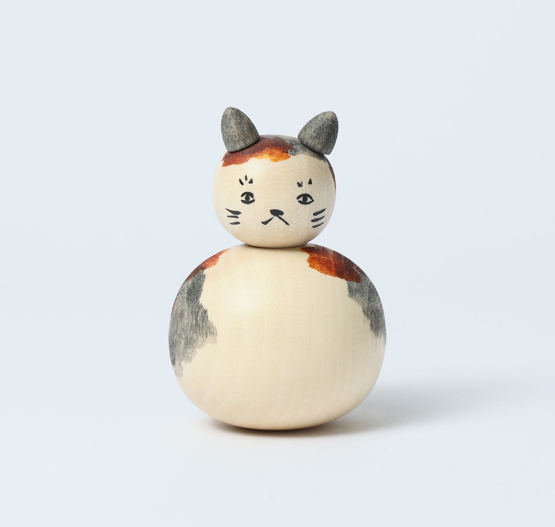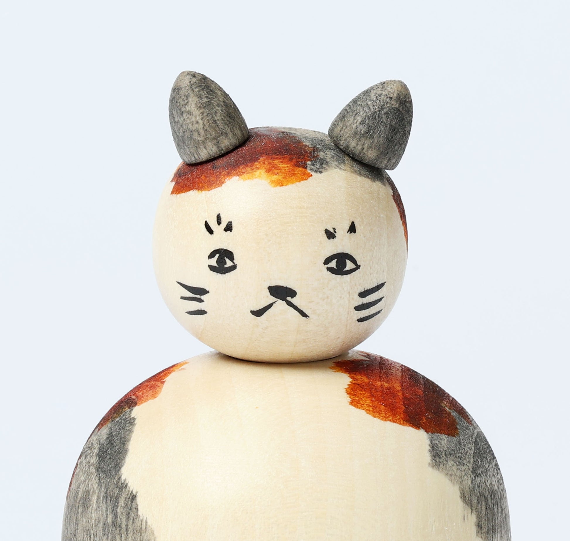 This is a Neko kokeshi doll, by KOYAMA Yoshimi who is a Togatta style kokeshi craftsperson. Neko means cat in Japanese.