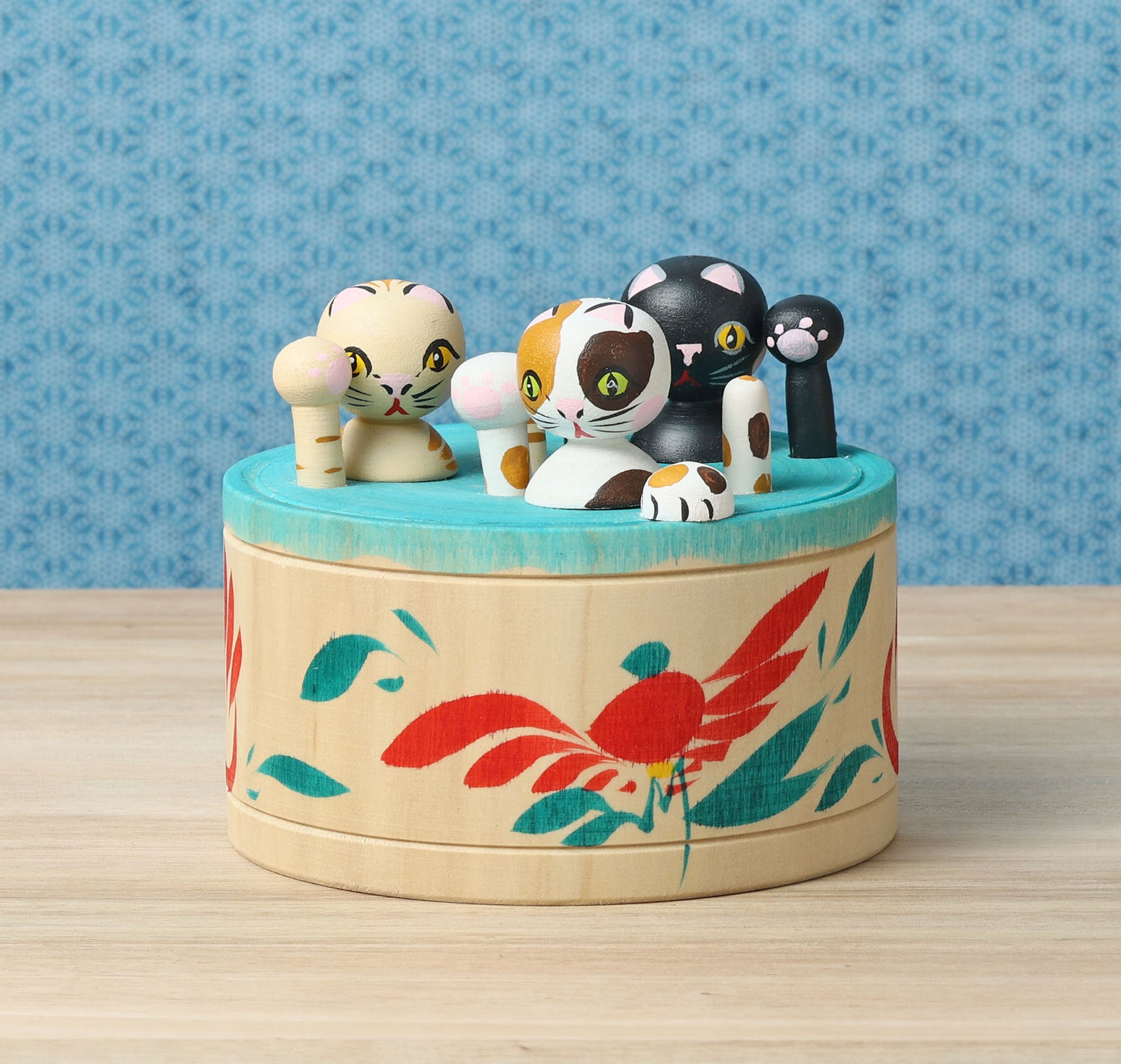 Onsen neko ejiko kokeshi doll-1 温泉猫えじこ | HIRAGA, Teruyuki 平賀輝幸工人 | 9cm in height