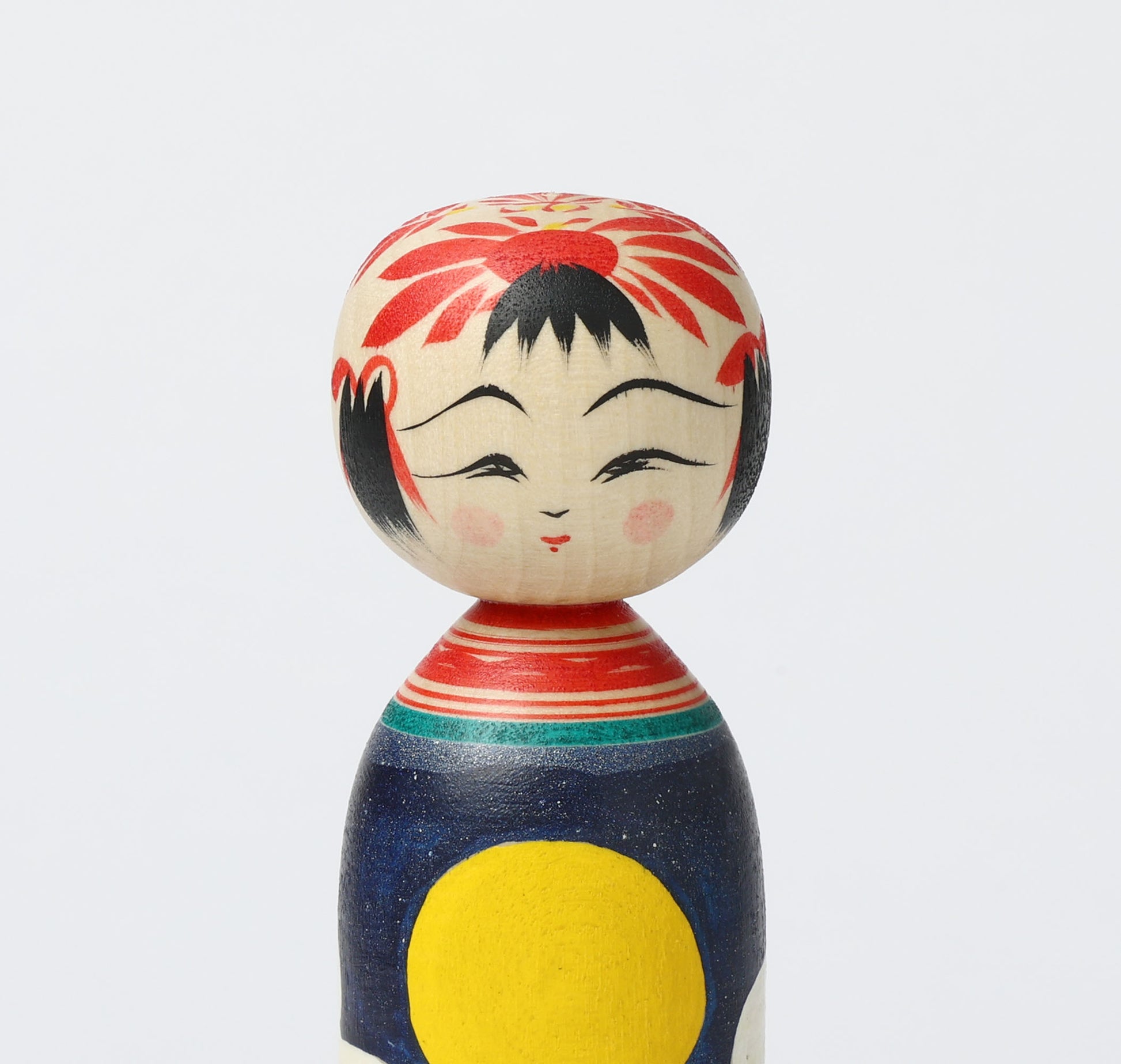 HIRAGA, Teruyuki 平賀輝幸工人 | Otsukimi-harvest moon kokeshi doll お月見こけし | Sakunami style 作並系 | 16cm in height