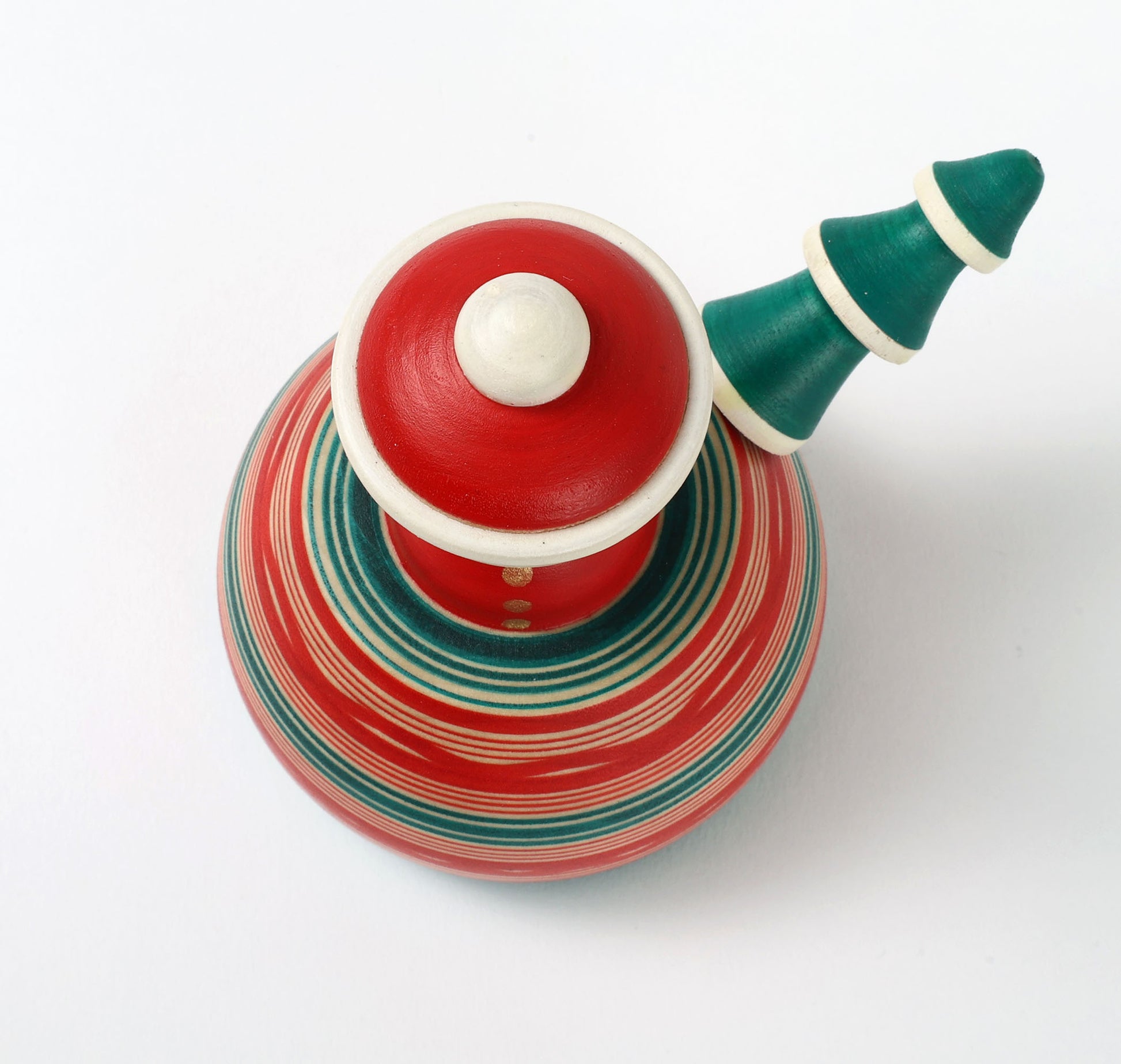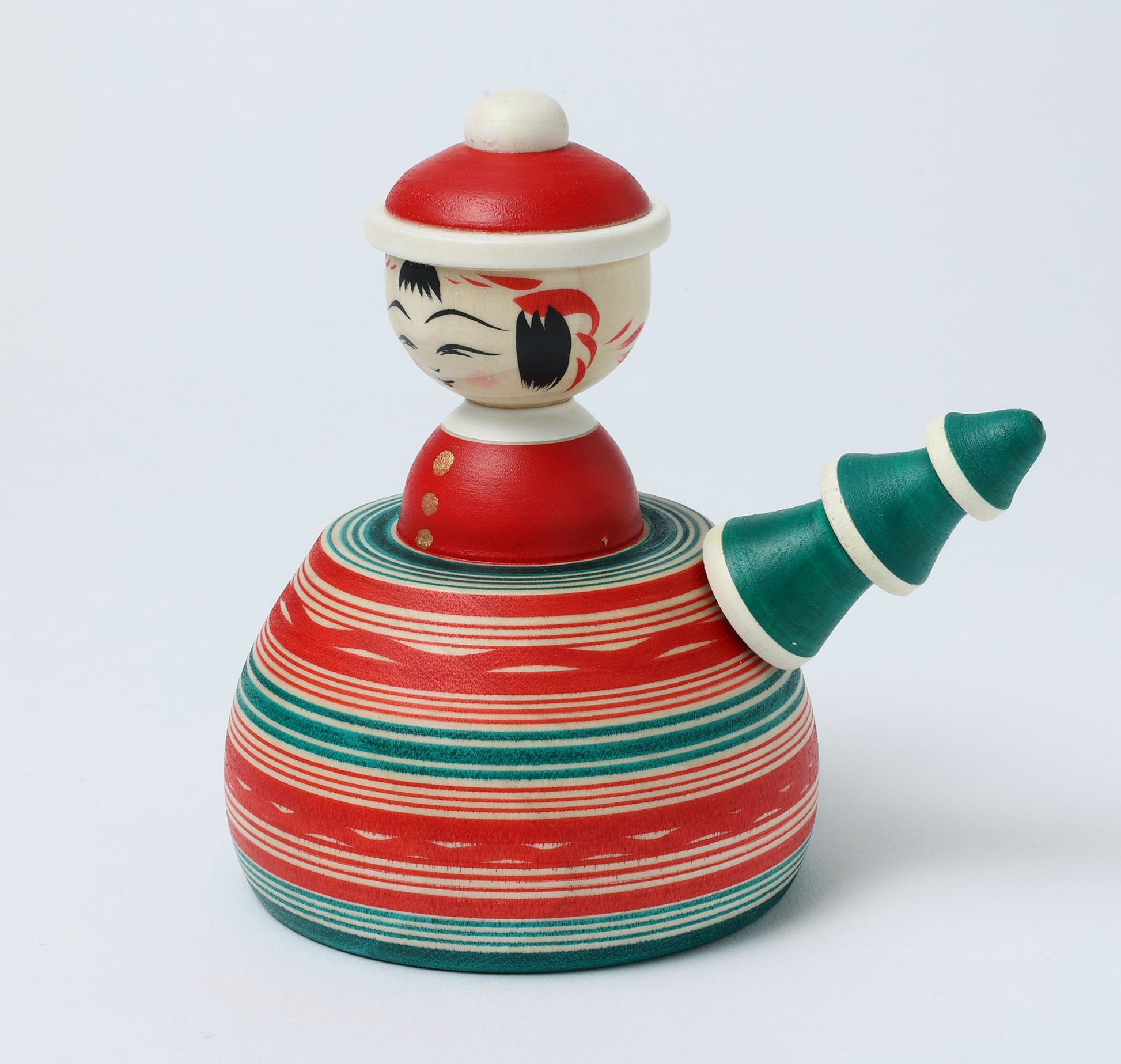 This is a Santa Clause ejiko with a Christmas tree, by HIRAGA Teruyuki who is a Sakunami style kokeshi craftsman.