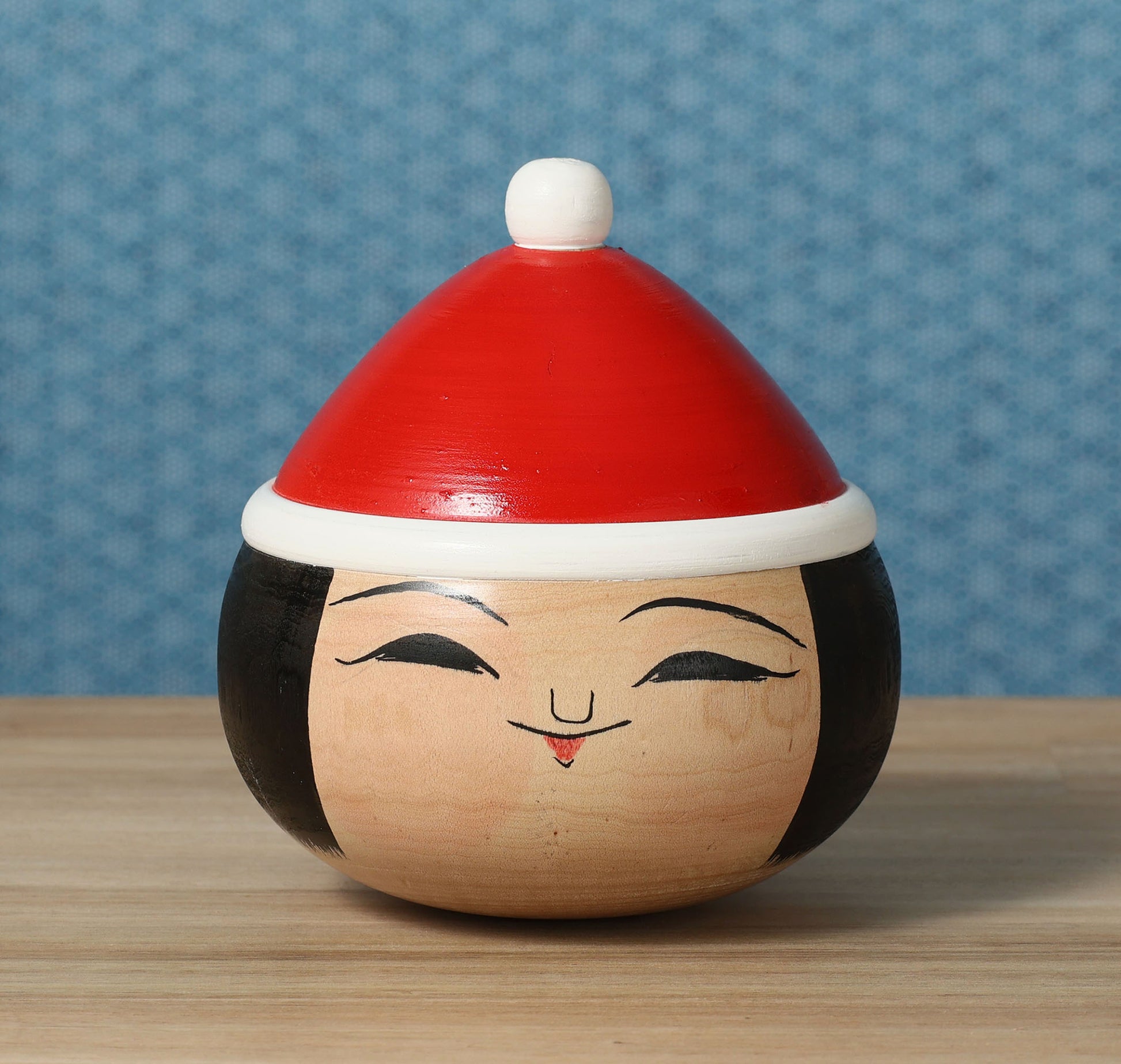 This is a Santa Claus kokeshi doll, by Muchihide Abo who is a Tsugaru style kokeshi craftsman.