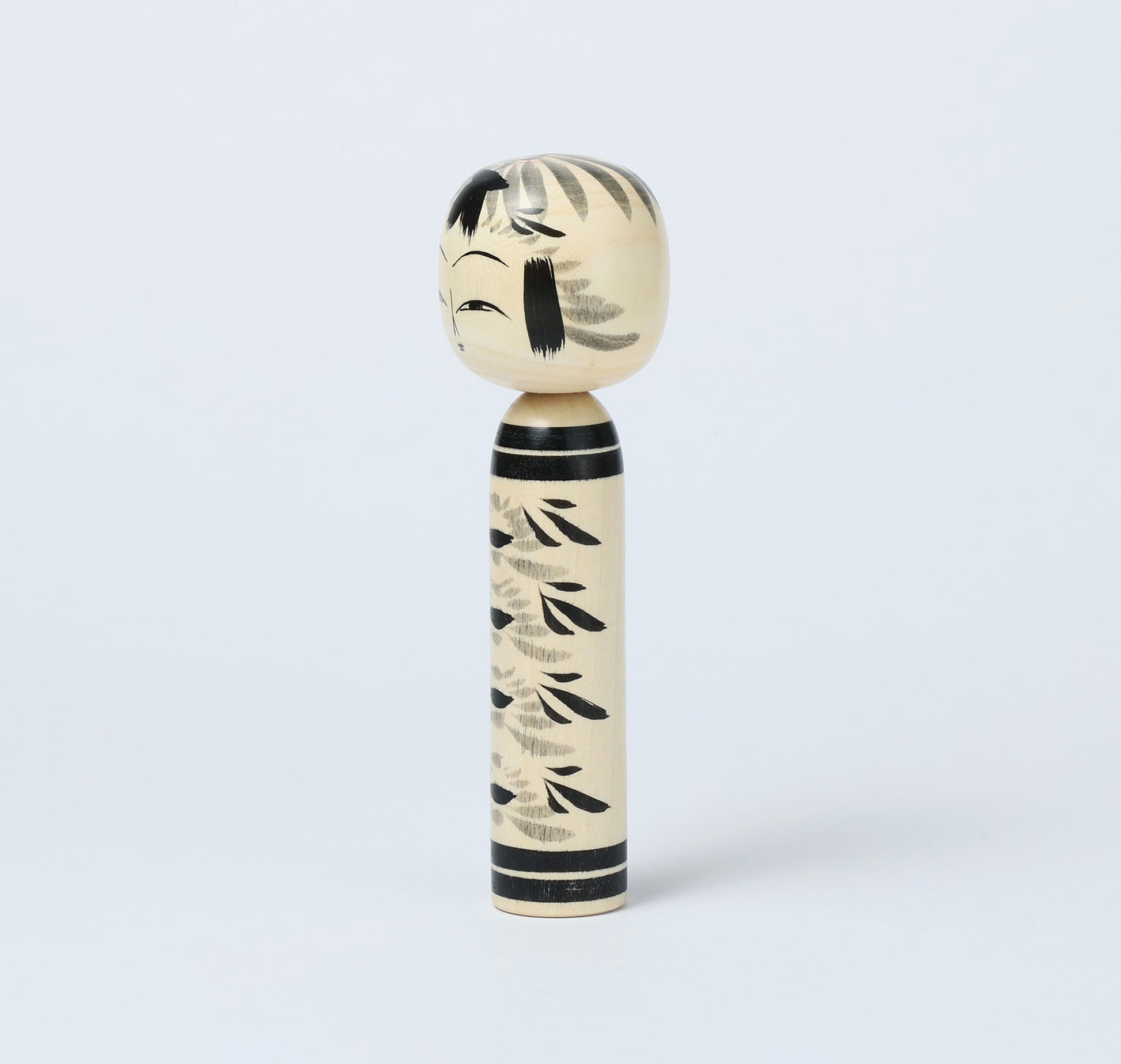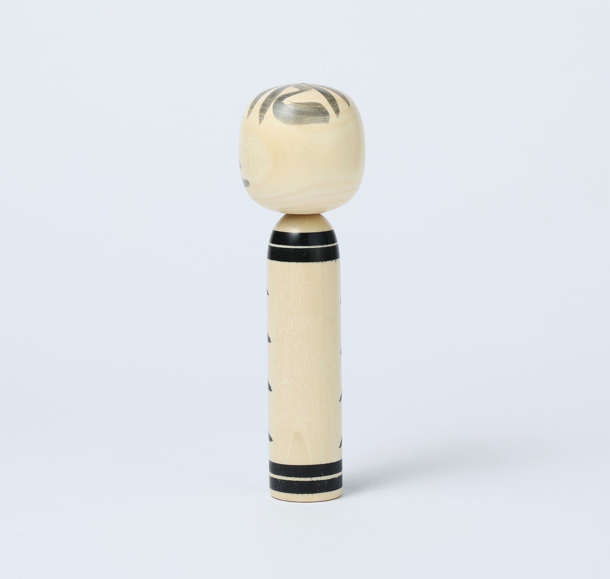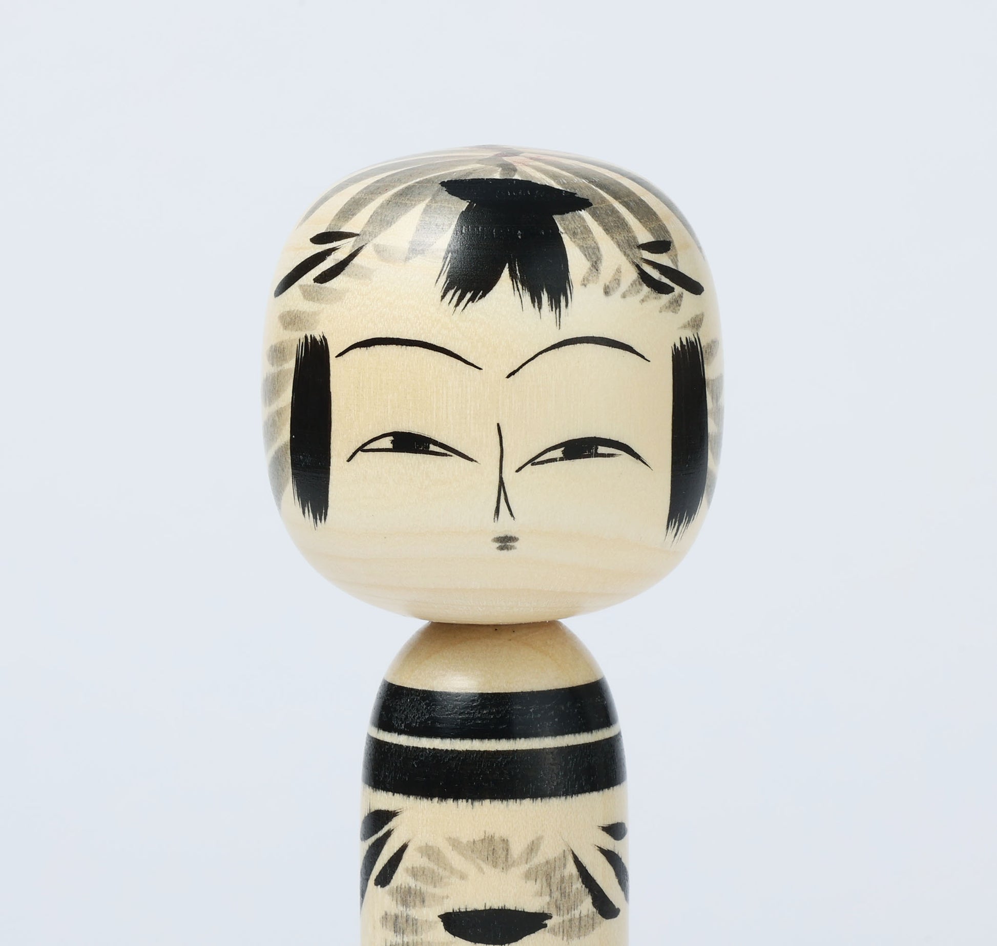 This is a Sumi e-black and white kokeshi doll, by OGASAWARA Yoshio who was a Togatta style kokeshi craftsman.
