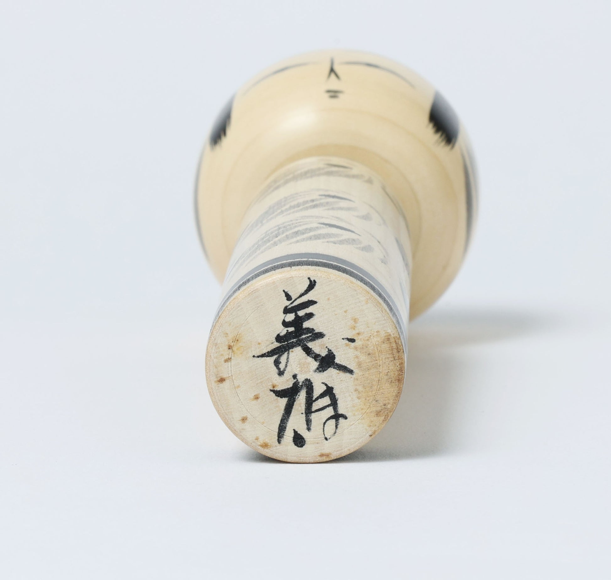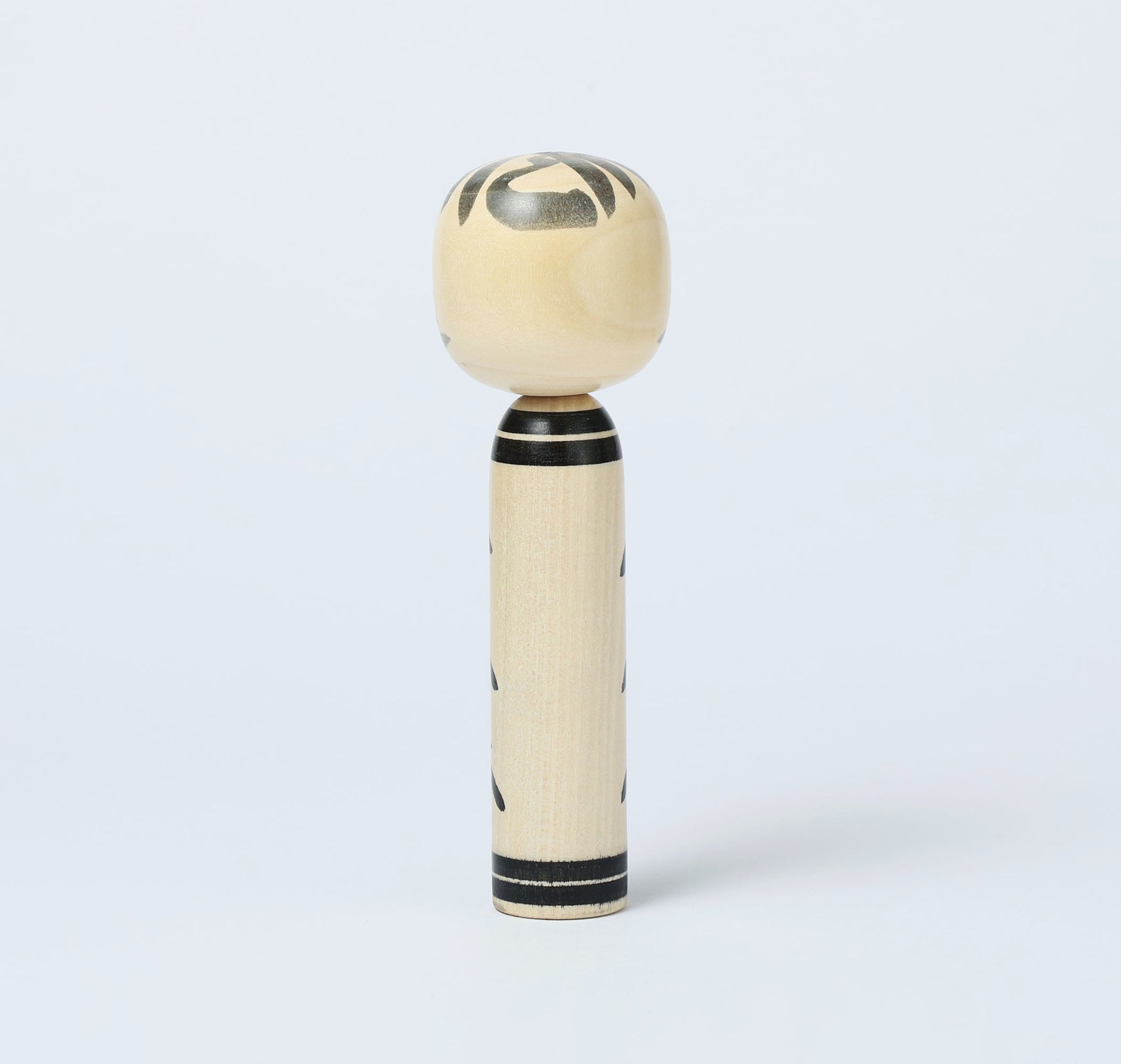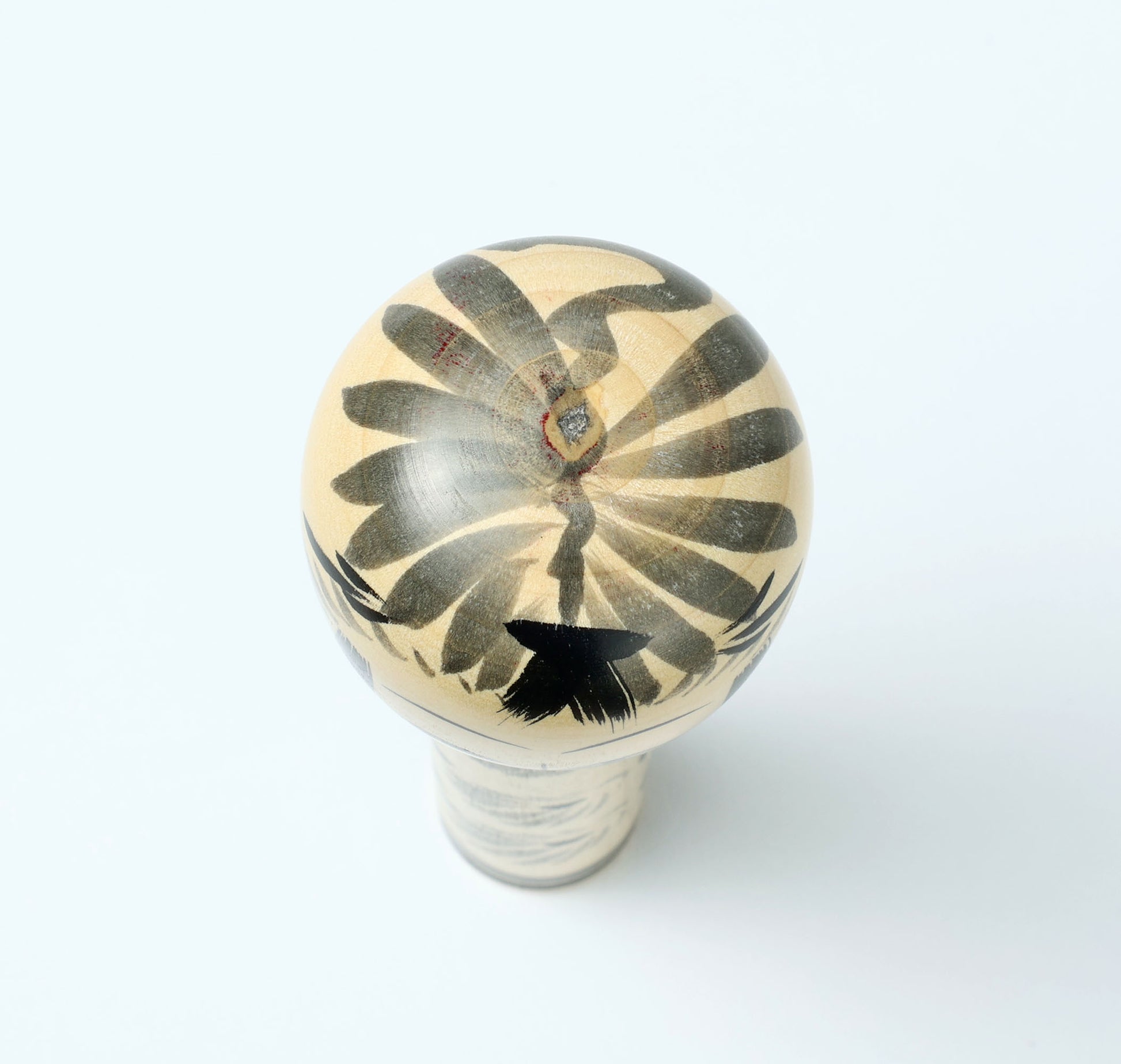 This is a Sumi e-black and white kokeshi doll, by OGASAWARA Yoshio who was a Togatta style kokeshi craftsman.