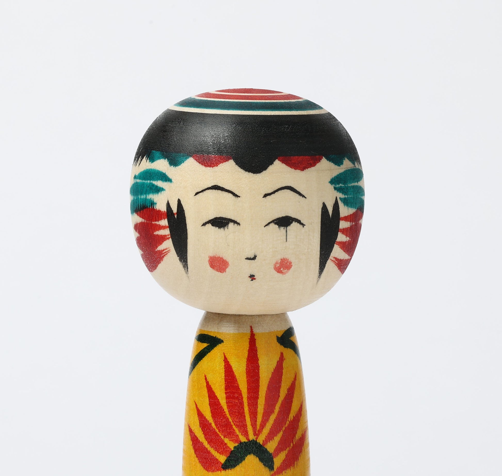 This is a dento Yajiro kokeshi doll, by KIMURA, Atsushi who is a Yajiro style kokeshi craftsman. (‘Dento’ means ‘traditional’ in Japanese.)