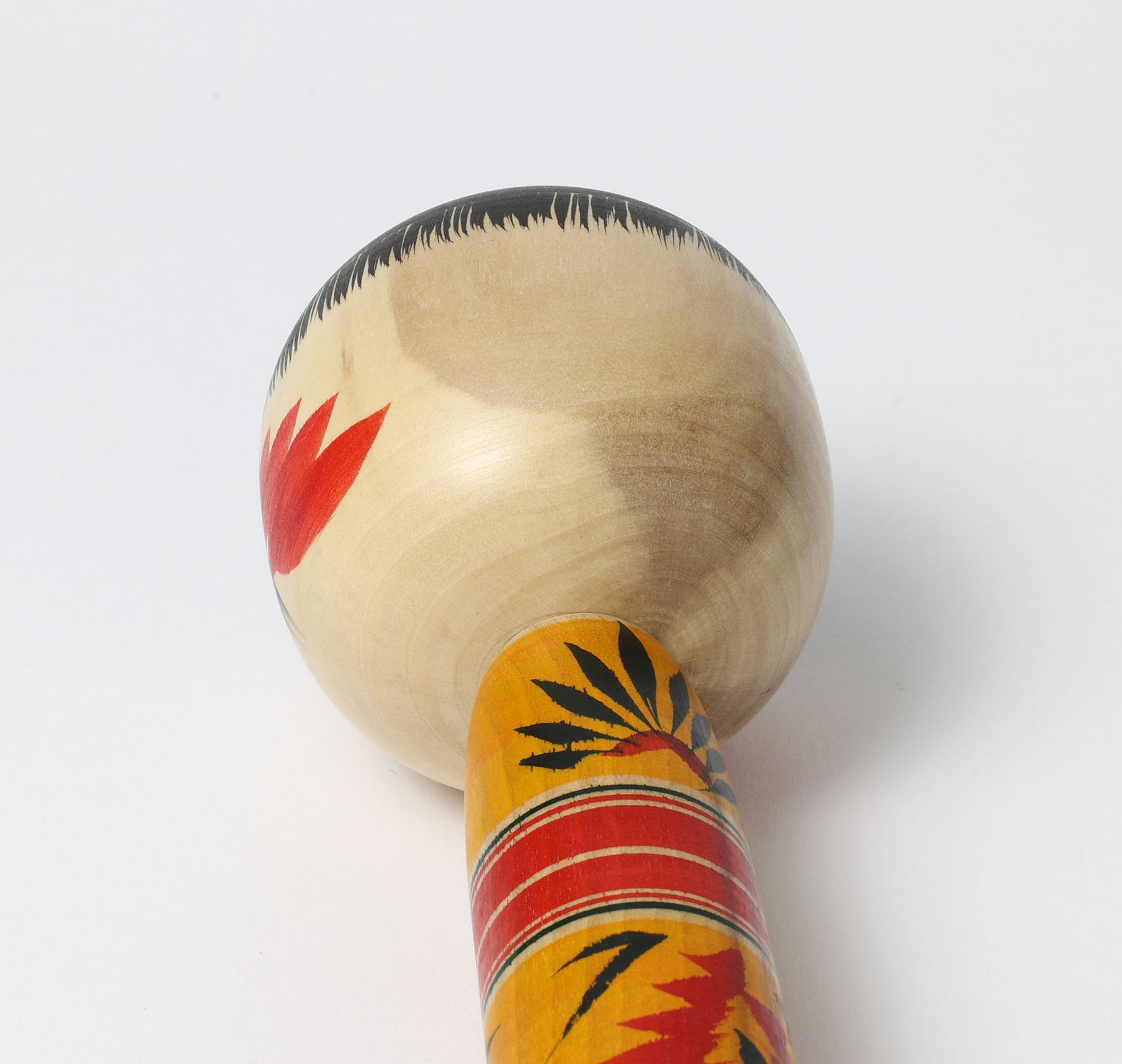 This is a dento Yajiro kokeshi doll, by KIMURA, Atsushi who is a Yajiro style kokeshi craftsman. (‘Dento’ means ‘traditional’ in Japanese.)
