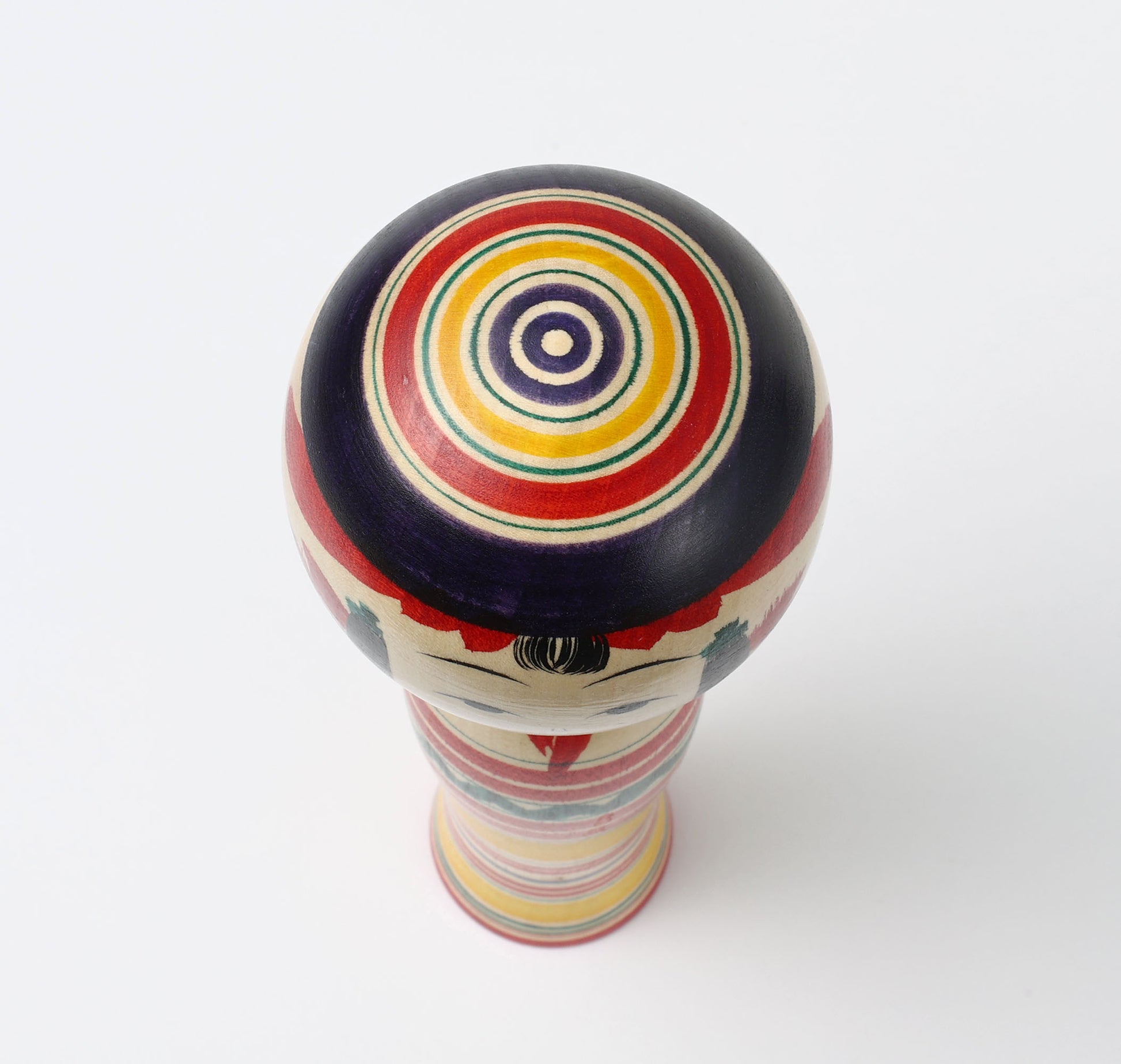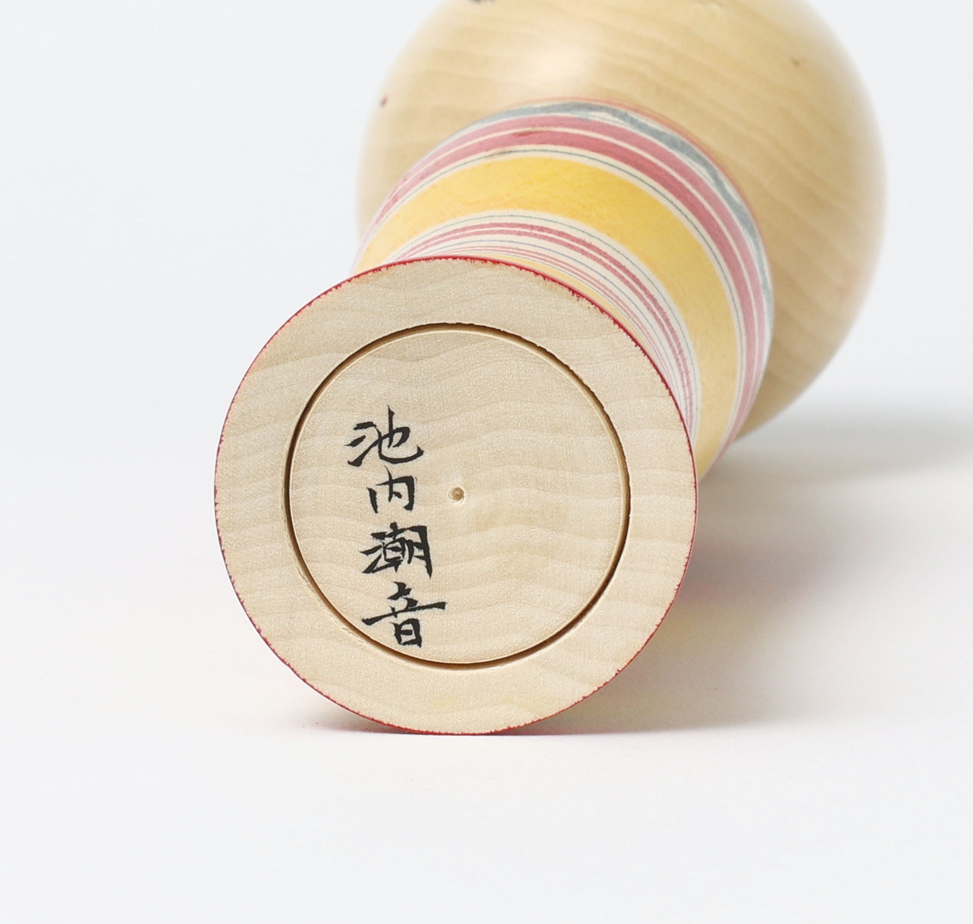 This is a dento Yajiro kokeshi doll, by Shione Ikeuchi who is a Yajiro style kokeshi craftsperson. (‘Dento’ means ‘traditional’ in Japanese.)
