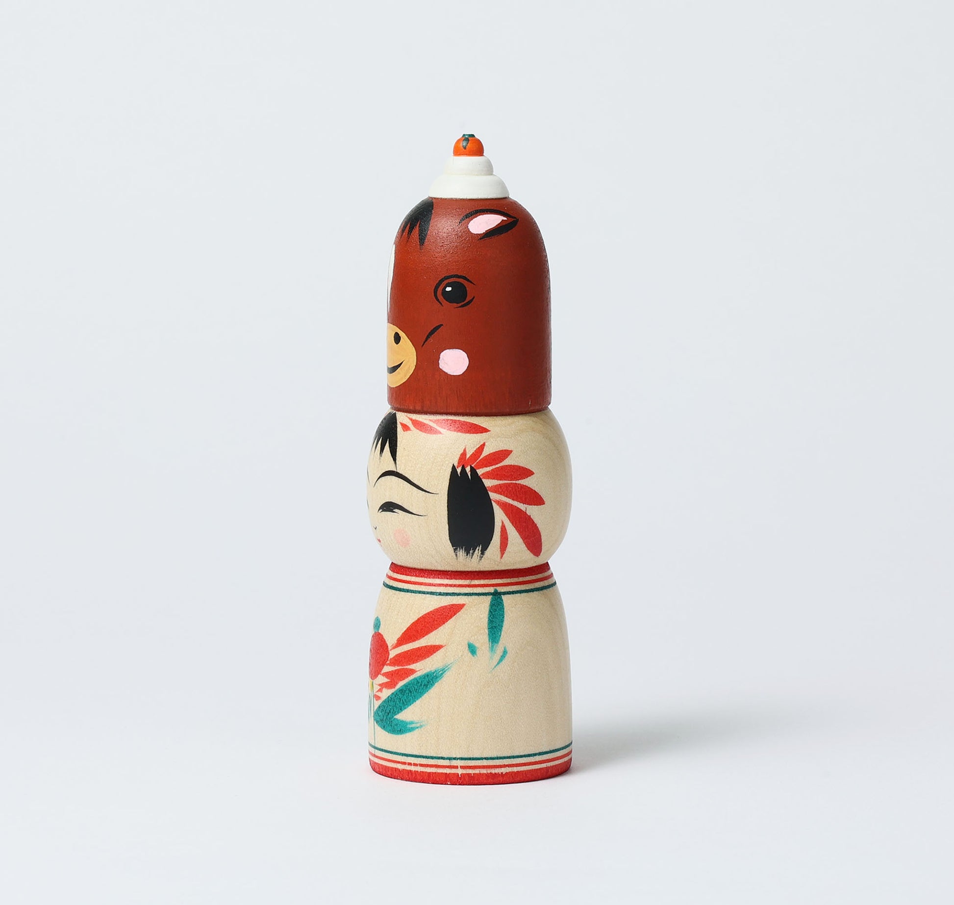 This is an Eto kokeshi, by HIRAGA Teruyuki who is a Sakunami style kokeshi craftsman. ‘Eto’ means ‘zodiac’ in Japanese.