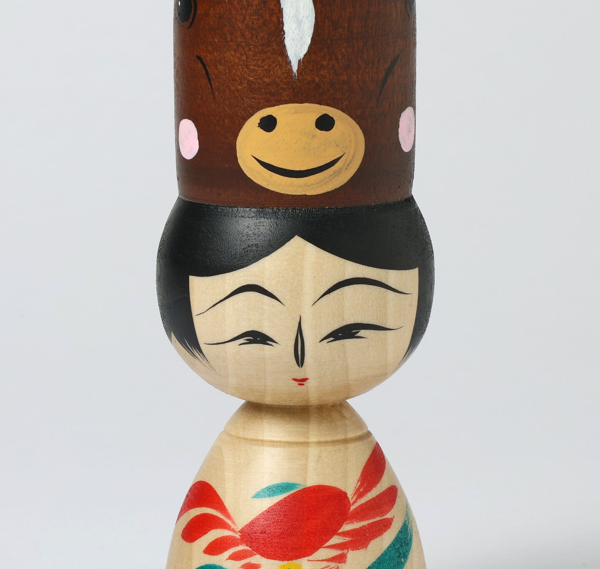 This is an Eto kokeshi, by HIRAGA Teruyuki who is a Sakunami style kokeshi craftsman.